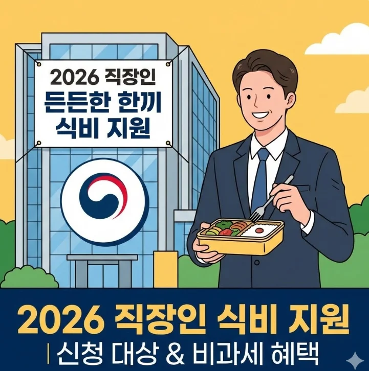직장인 식비 지원 2026년부터 시행되는 든든한 한끼 사업의 신청 대상과 방법, 비과세 혜택 정보를 머니인포연구소에서 쉽고 빠르게 정리해 드립니다. 고물가 시대에 점심 한 끼 가격이 부담스러운 직장인들이 늘어나면서 식비 절약 방법에 대한 관심이 그 어느 때보다 높습니다. 특히 중소기업에 재직 중이라면 정부에서 지원하는 새로운 복지 혜택이 있는지 검색하게 되는 것이 당연한 마음일 것입니다. 이번 글에서는 …